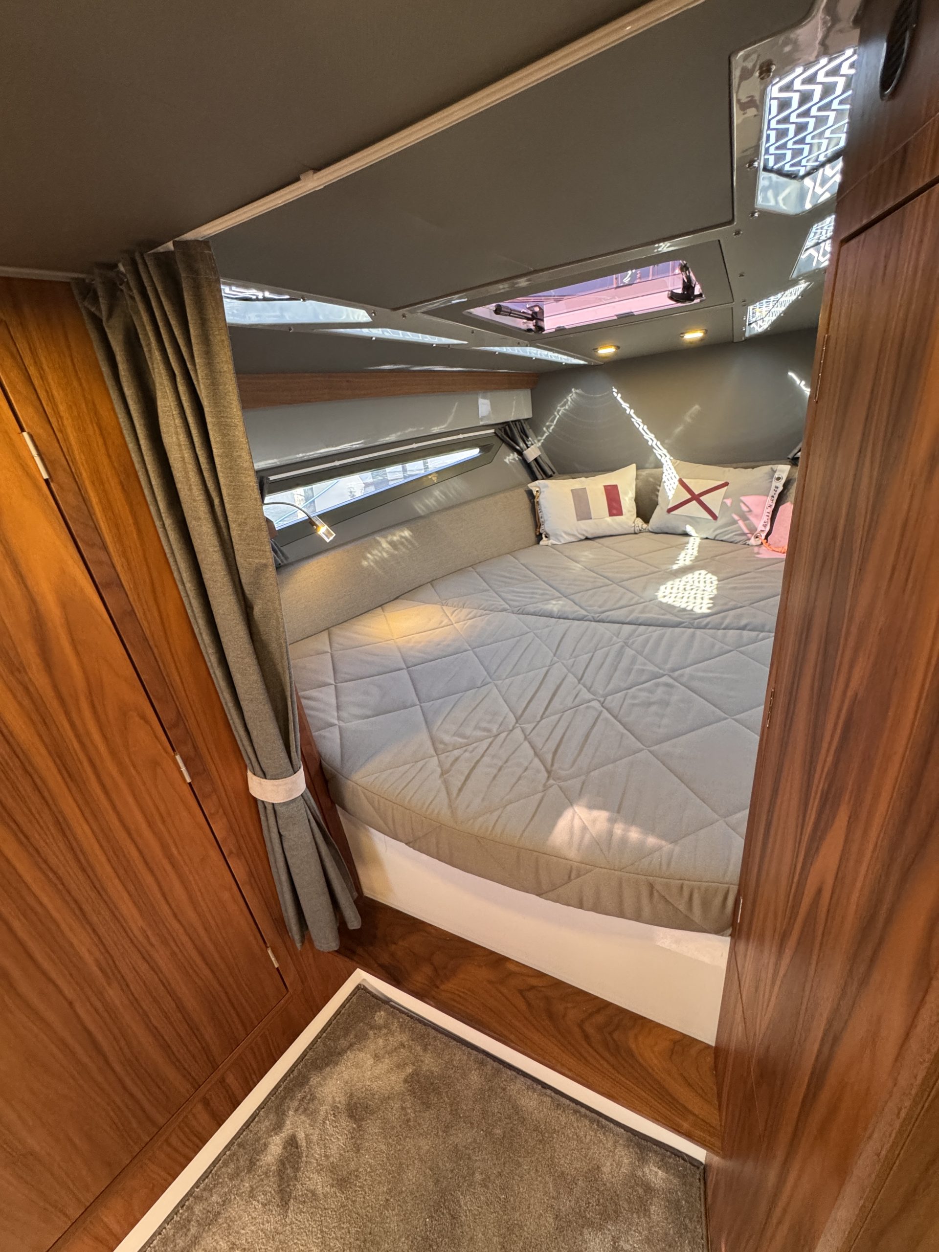 ✔️ Totalt 4 kojer under däck fördelat på 2 dubbelkojer. 2 till kan sova i sittbrunnen om man bäddar ner bordet.