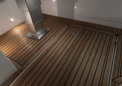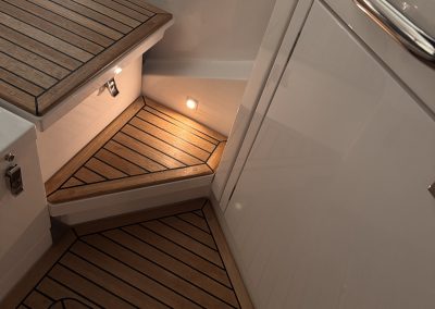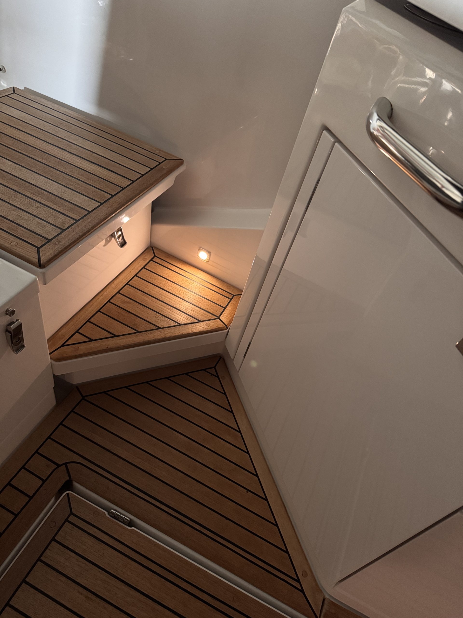 ✅ Rymlig ”hall” nedanför trappan under däck.