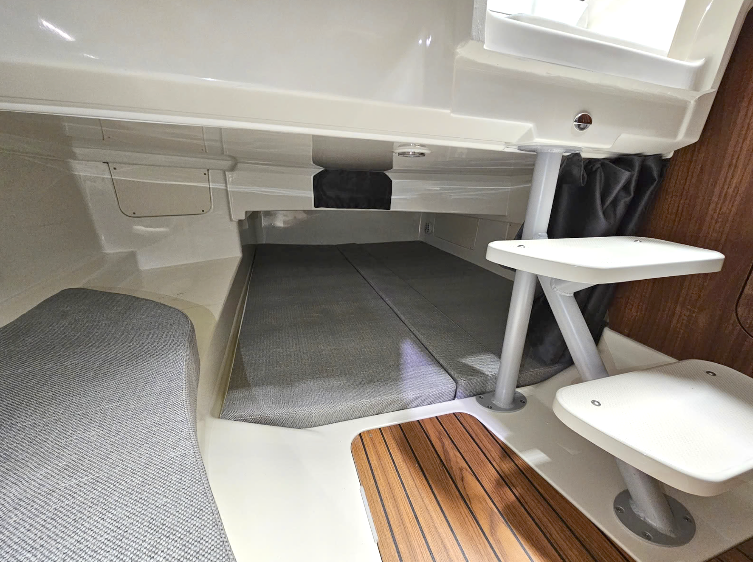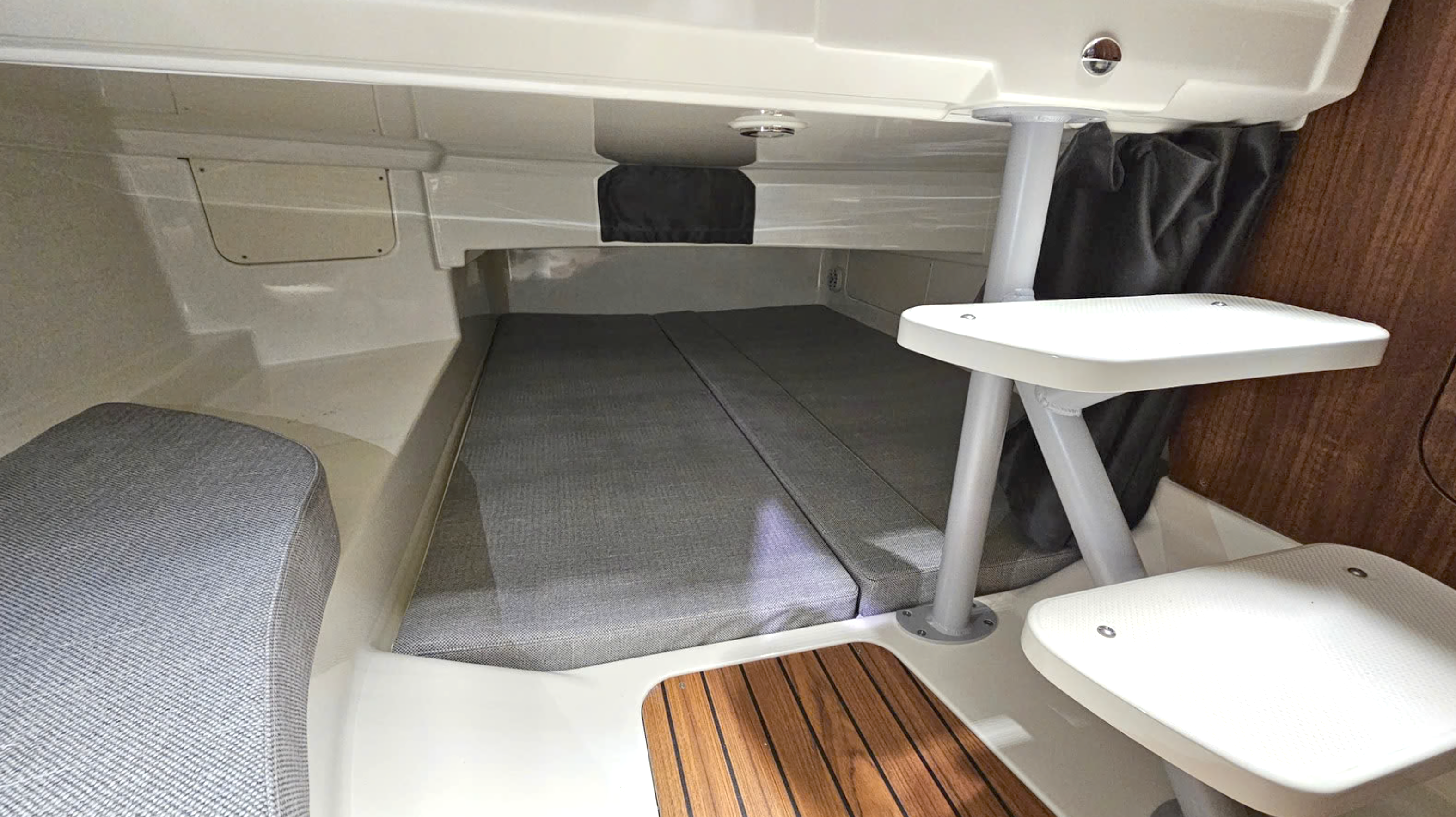 Årsmodell 2026 innebär dessutom den nya gatorstep-durken som inte bara är mjuk att gå på utan även ger ett bättre halkskydd. Dessutom åldras den inte på samma sätt som de tidigare laminatdurkarna med teakimitation, som snabbt blev vitmjölkiga i toppskiktet.